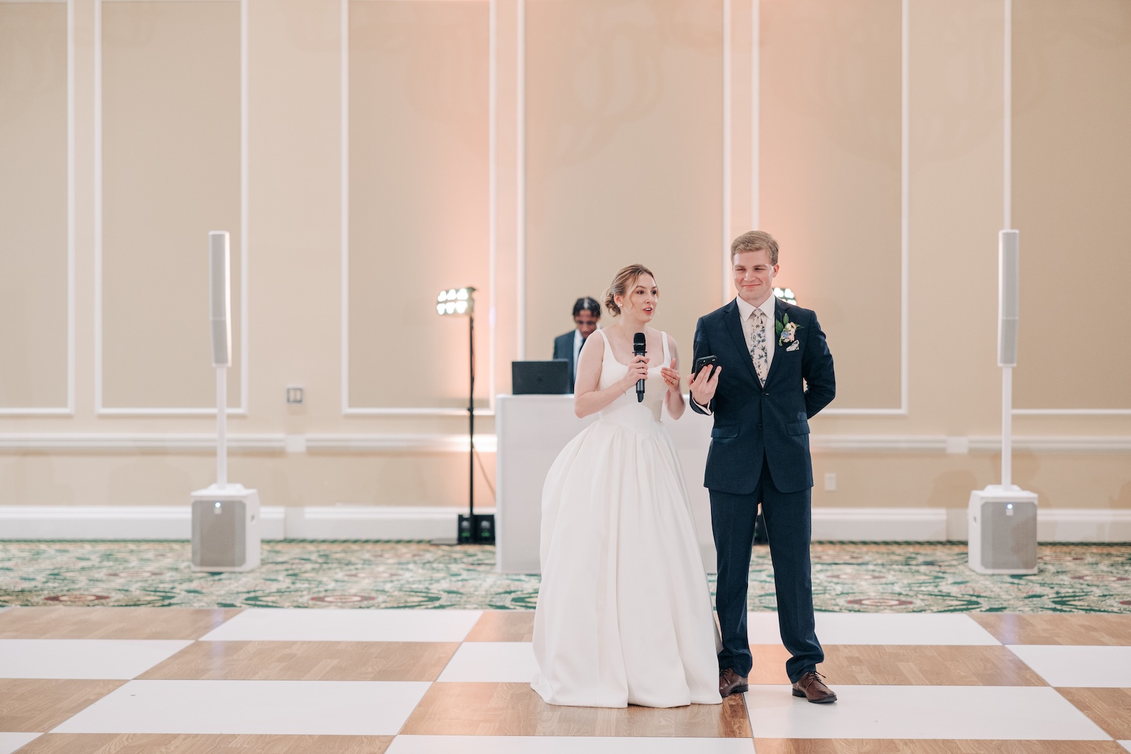 Ian and Catherine welcome speech in Hunter Hall | Luke & Ashley Photography
